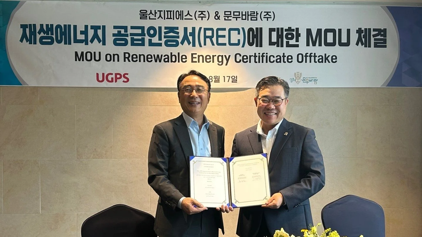 문무바람, 울산지피에스와 신재생에너지 공급인증서 장기 고정가격구매 양해각서 체결
